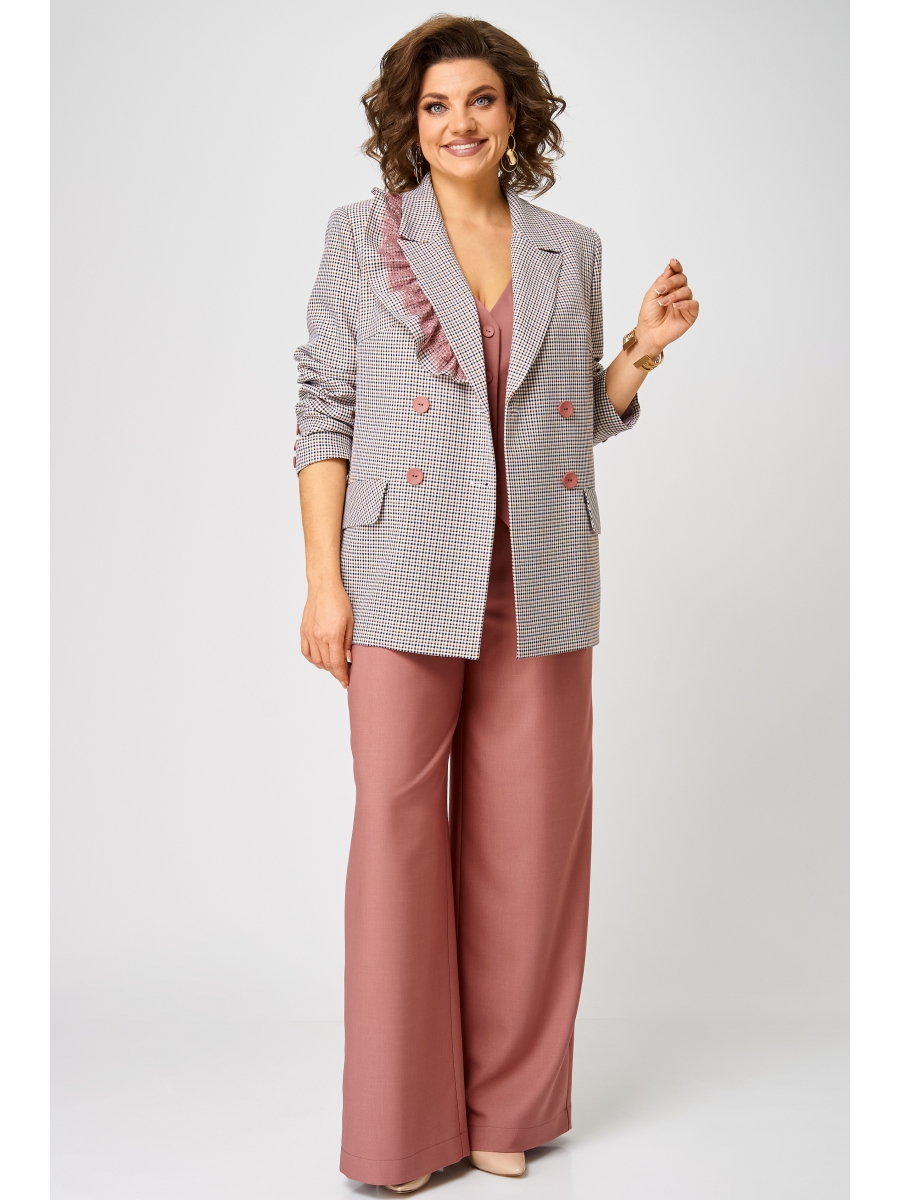 Стильный брючный комплект-тройка с удлиненным жакетом в клетку станет отличным дополнением Вашего осеннего гардероба.