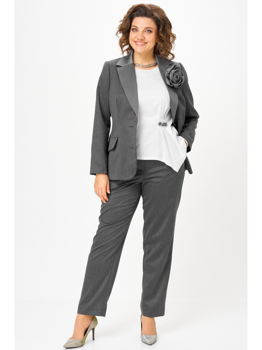 Классический комплект-тройка, состоящий из жакета, блузки и брюк, подчеркнет Вашу элегантность и женственность. Съемная брошь в виде цветка поможет в создании различных образов.