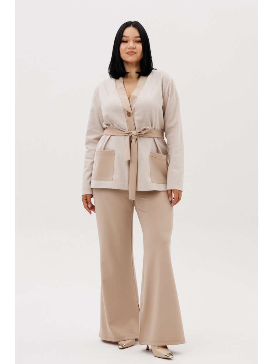 Этот комплект сочетает в себе элегантность и комфорт, что делает его подходящим как для деловых встреч или прогулок.