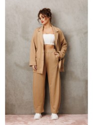 Жакет со спущенным плечом. Воротник пиджачного типа, по полочке идут накладные карманы. Жакет без подкладки, мягкий и легкий. Края борта воротника, низов и карманов не обработаны. Застежка на петли и пуговицы. Выполнен в крое Oversize свободной формы и посадкой по фигуре. Если хотите силуэтную посадку, выбирайте на размер меньше. Если хотите посадку свободнее - заказывайте свой размер.