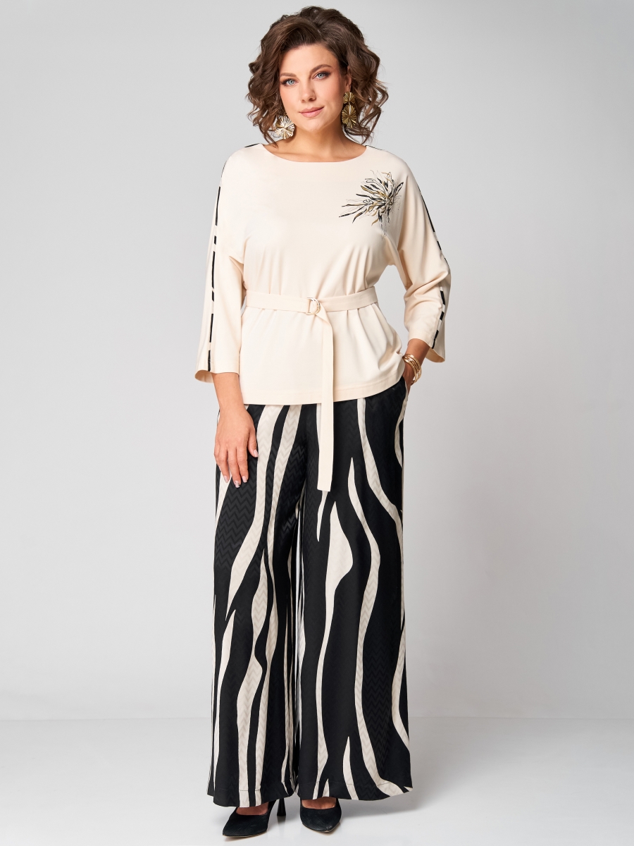 Брючный костюм МишельСтиль арт: 1308 молочно-черный купить от белорусских производителей за 11745 руб. — с доставкой по Москве и России : belpodium.ru