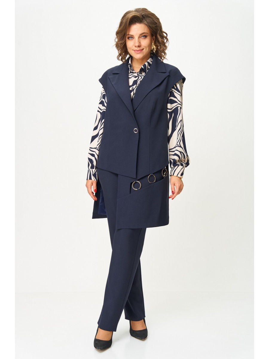 Нарядный женский комплект, состоящий из жилета, брюк и блузки.