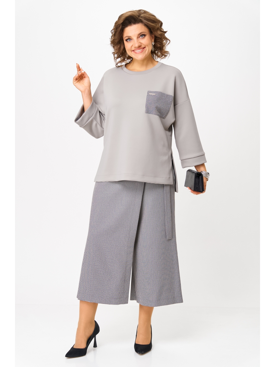 Комплект состоит из брюк-кюлотов с элегантным запахом и трикотажного джемпера.