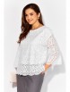Блузка прямого силуэта с рукавом длинной 3/4. Рукав со спущенной линией плеча. Вырез горловины "лодочка" расширенный, с отделкой кружевной тесьмой. По спинке фигурный вырез, акцентирован отделочной "монеткой". Лиф блузки на подкладке.