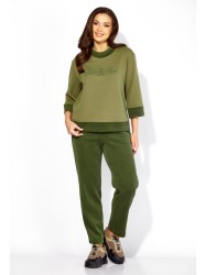Комплект женский, 2-х предметный, состоящий из джемпера и брюк, в сочетании двух видов трикотажного полотна.