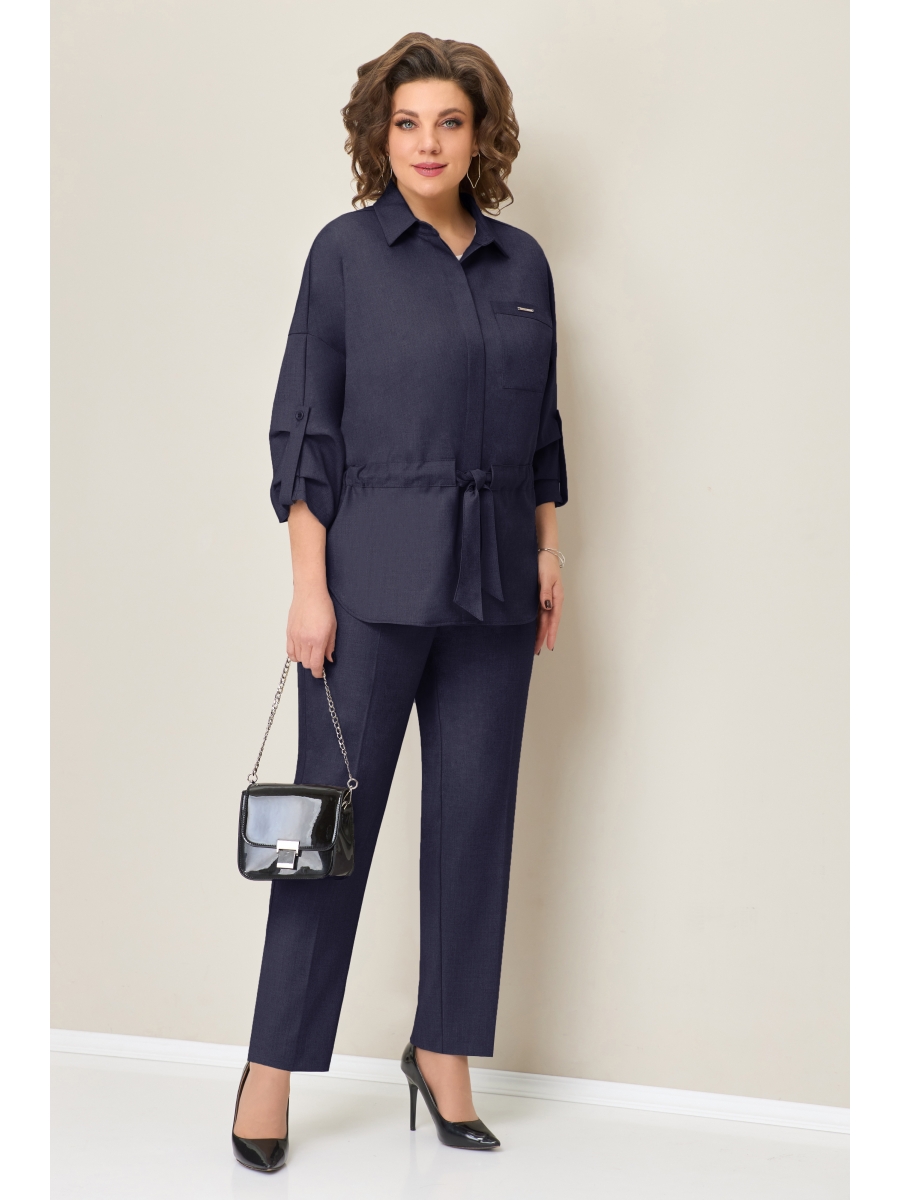Жакет на потайной застежке, с пришивной кулисой и поясом, прямые классические брюки и блуза- универсальный комплект для различных вариантов носки. Элегантный рукав с патой на цельнокроеной основе.
