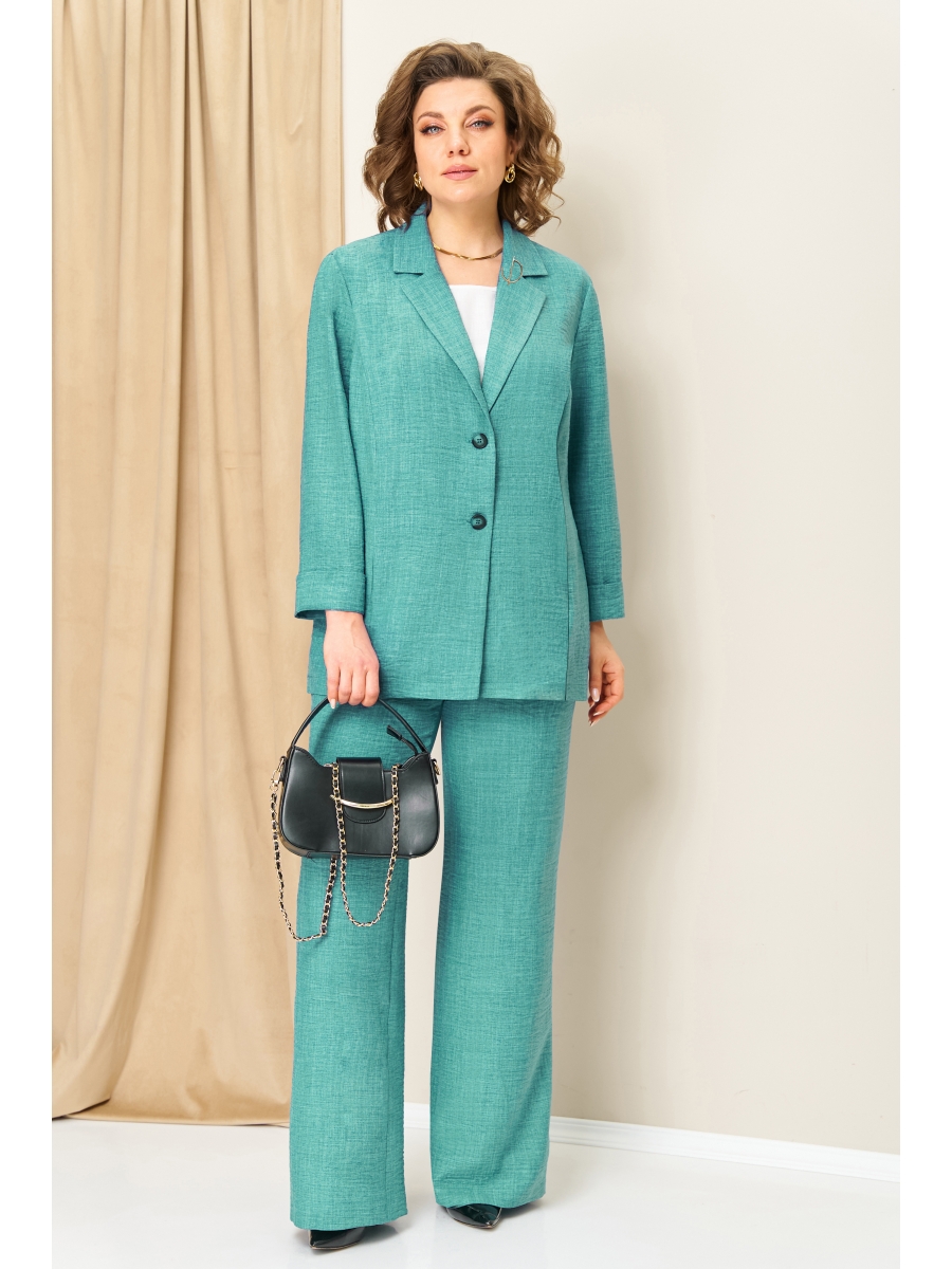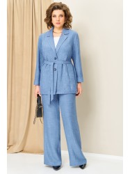 Жакет без подкладки с застежкой на пуговицы, с разрезами по бокам и съемным поясом. Рукав жакета втачной, с отворотом.