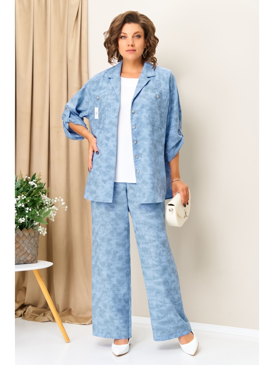 Брючный костюм артикул: 1415 серо-голубой от VOLNA - вид 1