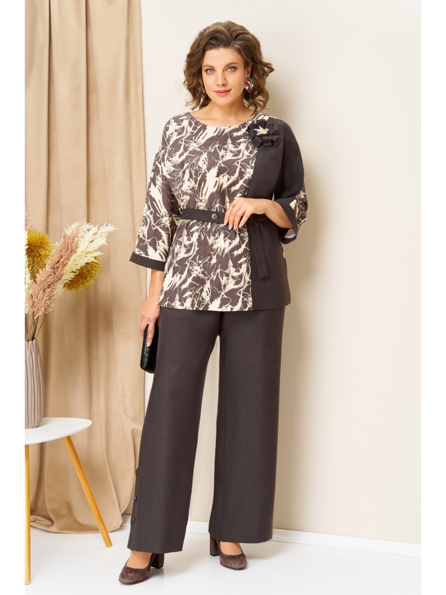 Комплект-двойка из текстильной ткани: комбинированная блуза и брюки свободного силуэта. Рукав блузы на цельнокроеной основе.