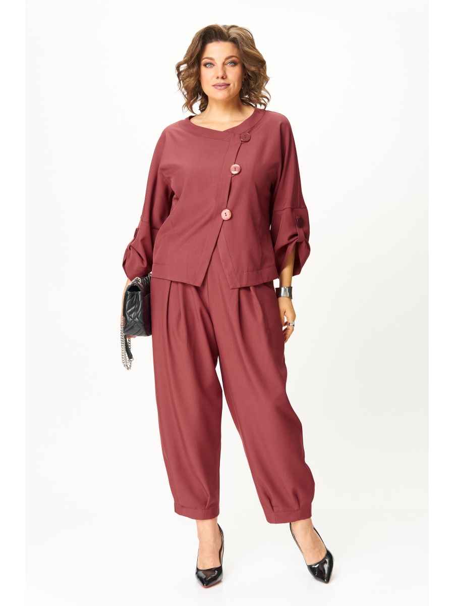 Брючный костюм артикул: 1436 брусничный от Мишель Шик - вид 1