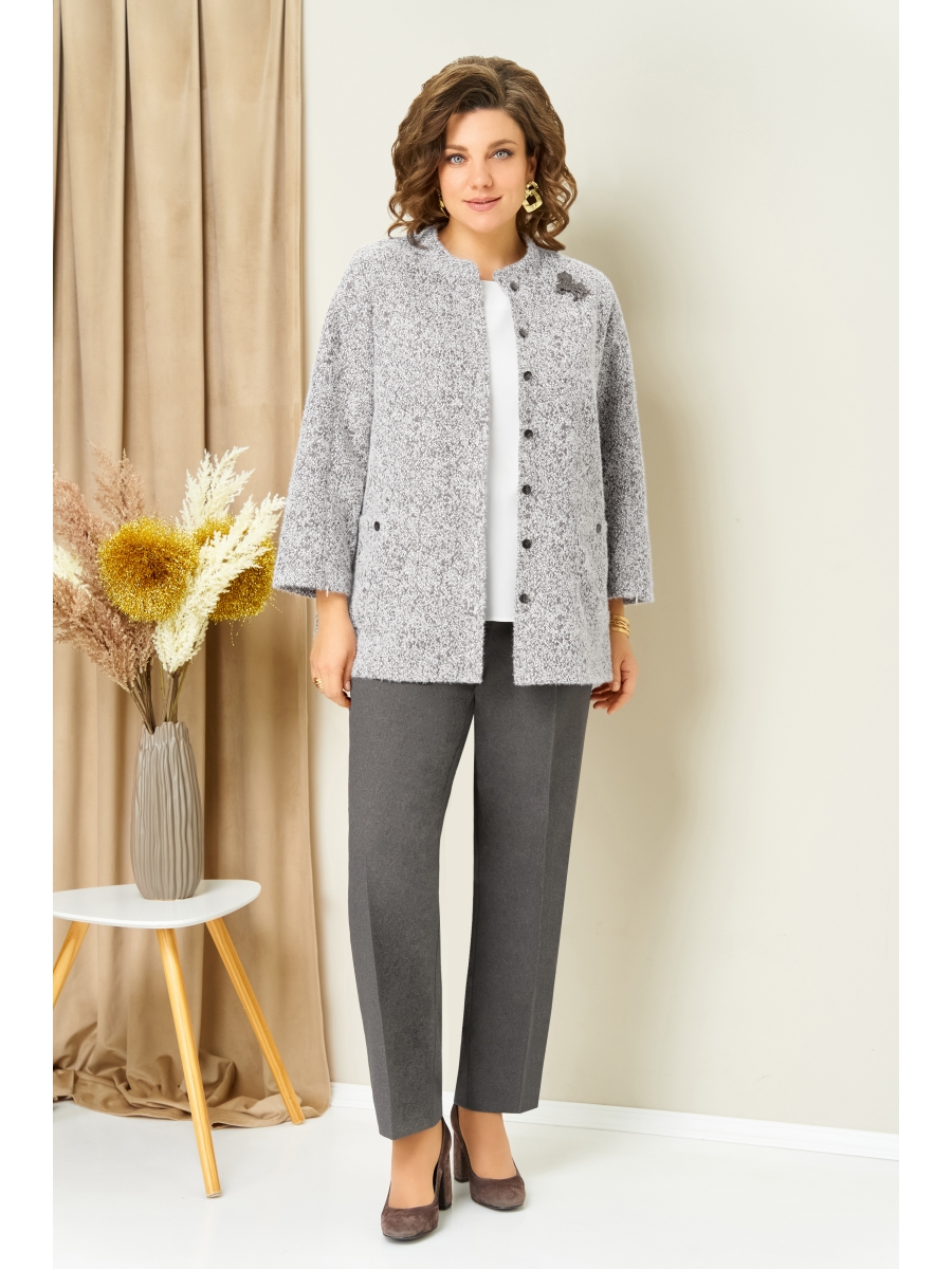Комфортный трикотажный жакет с отложным воротником-полустойкой без подкладки с потайной застежкой на пуговицы и накладными карманами. Рукав жакета втачной, слегка спущенный. В рукава вставлены потайные молнии для различных вариантов носки.