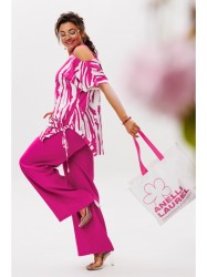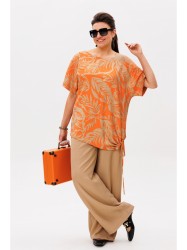 Принт «аффогато-терра» словно всплеск красок на холсте, превращает костюм в произведение искусства. Каждая деталь продумана так, чтобы блузу и брюки можно было легко комбинировать с другими вещами — ансамбль звучит гармонично как в дуэте, так и соло.