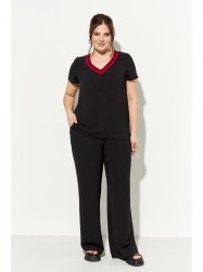 Туника свободного силуэта со втачными рукавами; линия горловины с V-образным вырезом и контрастным довязом.