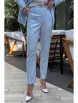 Брюки женские, зауженные к низу, на поясе, с 4-мя шлевками, с застежкой на тесьму - «молнию», расположенную в среднем шве передних половинок. Пояс застегивается спереди на один пришивной крючок, 1 петлю и 1 потайную пуговицу. Передние половинки брюк с боковыми наклонными карманами. Задние половинки брюк с вытачками, идущими от пояса вниз, с прорезным карманом с листочкой на левой задней части. Передние и задние половинки брюк с заутюженными стрелками.