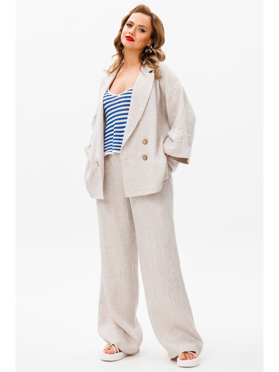 Элегантный и комфортный брючный костюм из 100% натурального льна создан для современных женщин, ценящих стиль и удобство. Свободный крой жакета с эффектной двубортной застёжкой и широкие брюки на высокой посадке формируют расслабленный, но при этом утончённый силуэт. Создайте безупречный образ для офиса, прогулки по городу или отдыха, выбирая комфорт, стиль и натуральность вместе с нашим льняным костюмом!