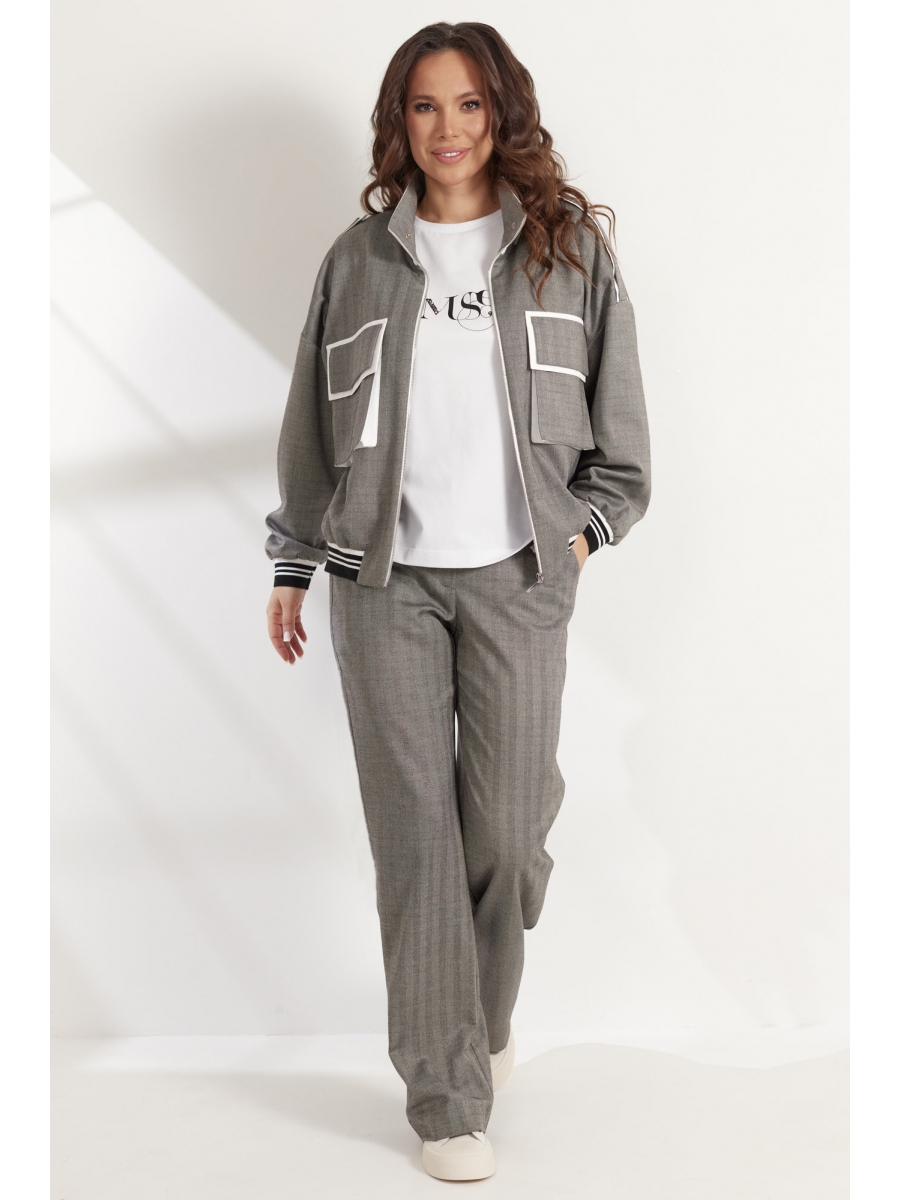 Комплект в стиле спорт-шик из бомбера, футболки и брюк.
