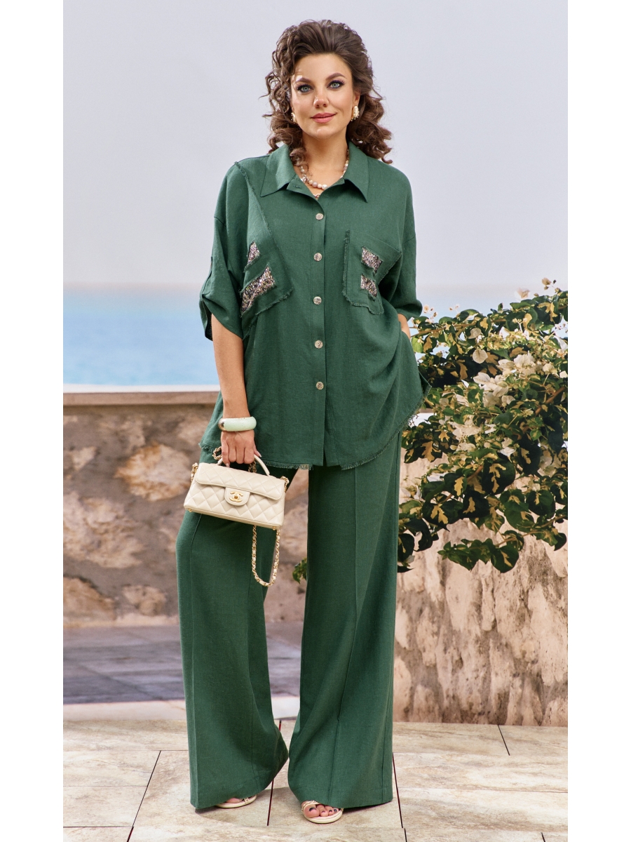 Этот изысканный женский льняной костюм цвета хаки представляет собой идеальное сочетание стиля и комфорта, отражая утонченность в каждой детали. Плотный, но при этом дышащий льняной материал добавляет ощущение легкости, идеально подходящее для теплых дней. Этот костюм стал не просто одеждой, а настоящим произведением искусства, подчеркивающим индивидуальность и естественную красоту.