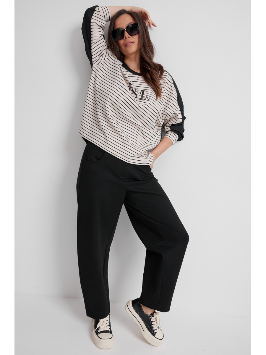 Брючный костюм артикул: 2640 бежевый/черный от Магия Моды - вид 1