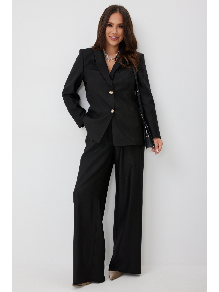 Выполнен из красивой гладкой костюмной ткани с легким отблеском.
