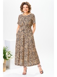 Юбка-брюки длинные широкие. Передние половинки с карманами в боковых швах с 2-мя односторонними зафиксированными складками на каждой половинке. Задние без конструктивных особенностей. Пояс притачной, собран на эластичную тесьму, закреплённую 2-мя отделочными строчками.