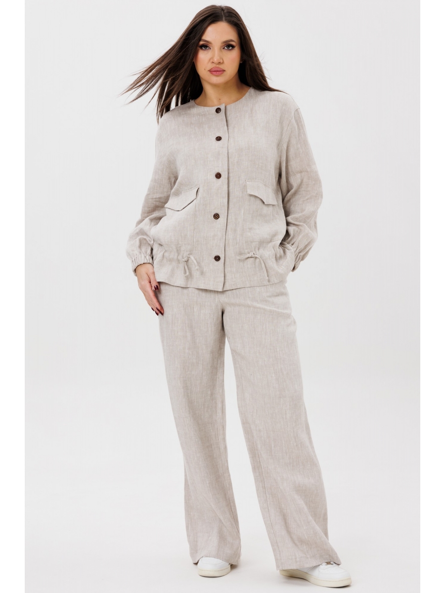Льняной костюм Ma Сhérie свободного силуэта, состоящий из бомбера и брюк.