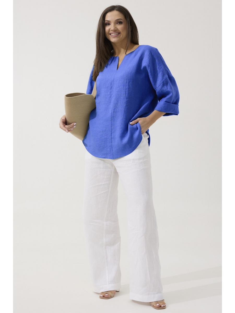 Льняной двухпредметный костюм Ma Cherie, состоящий из блузы и брюк.