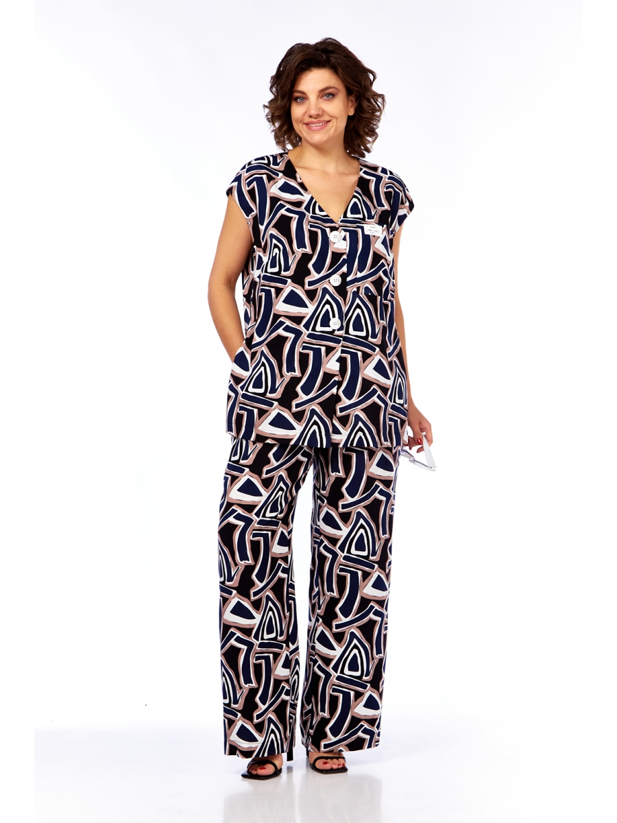 Костюм брючный 2-х предметный, состоит из блузки и брюк.