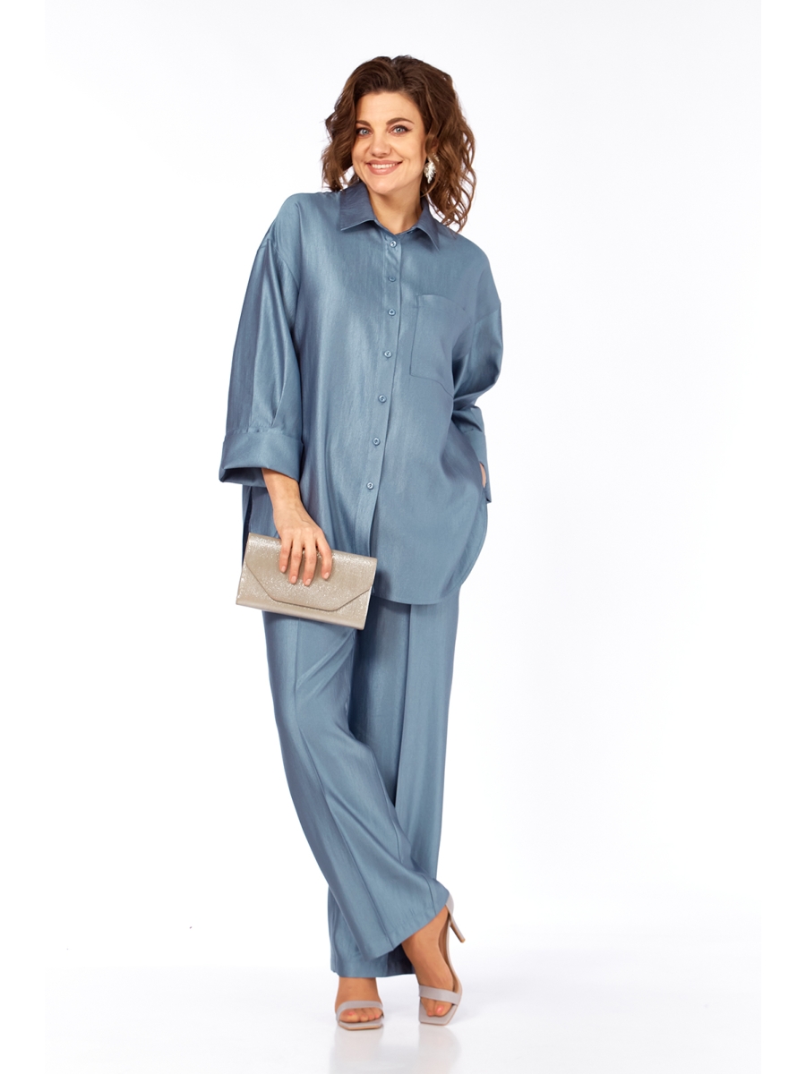 Костюм брючный двухпредметный, повседневно-нарядный, выполнен из ткани с мерцающим эффектом.