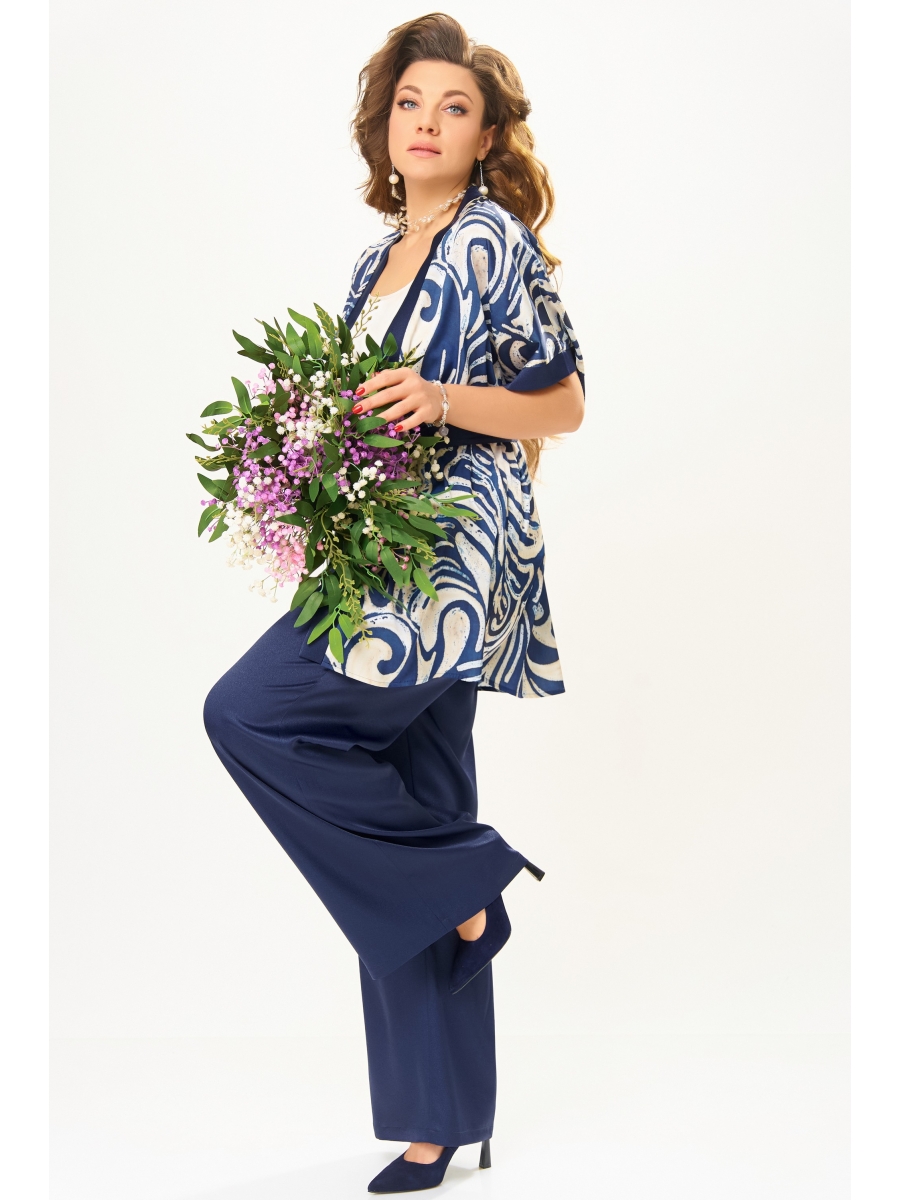 Брючный костюм артикул: 4081 сине-бежевый от FITA - вид 1