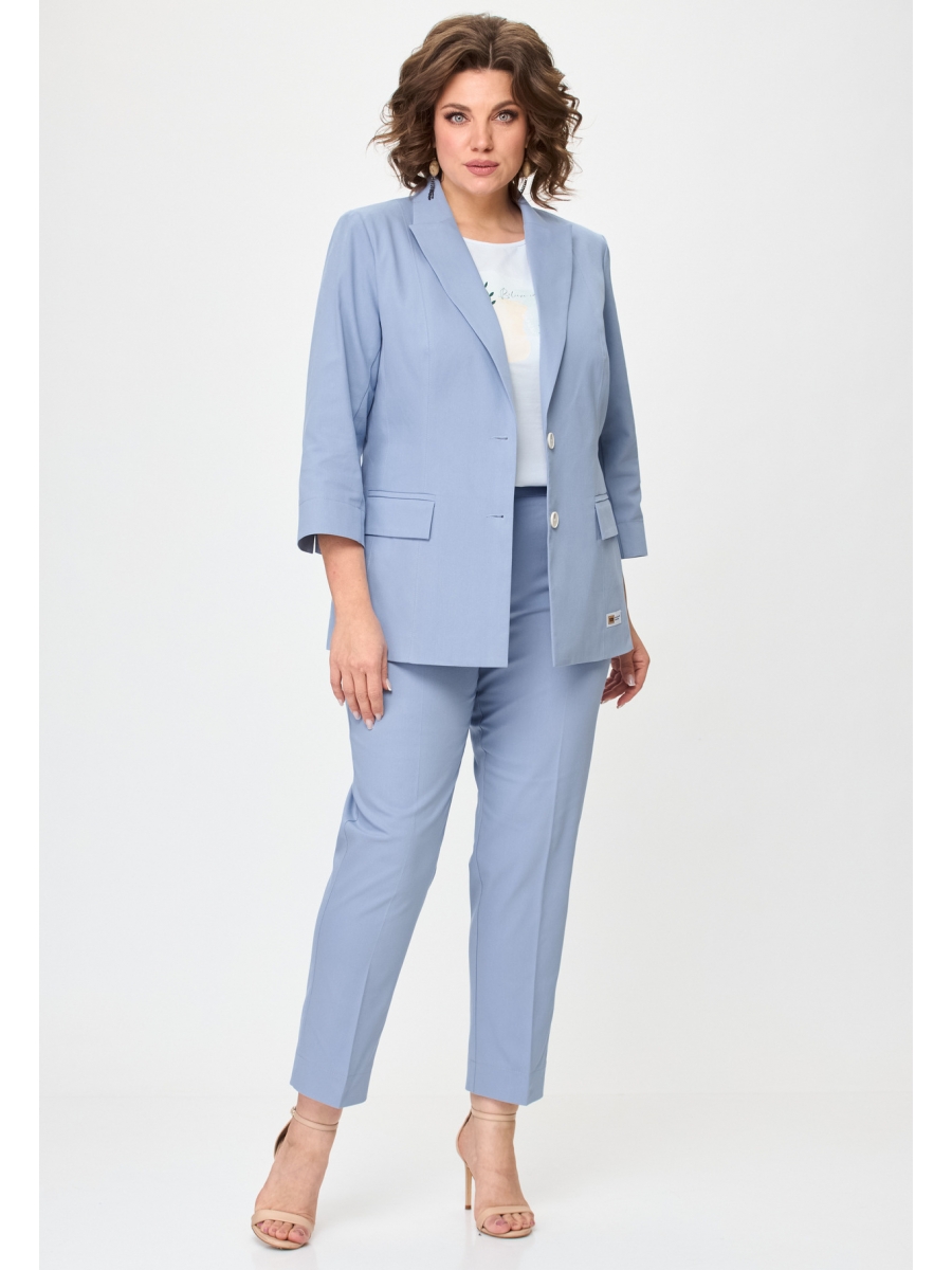 Брючный костюм артикул: 412+586 голубой джинс от БелЭльСтиль - вид 1