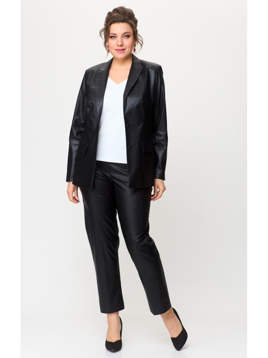 Комплект из удлиненного жакета и классических брюк из эко-кожи создан для тех, кто ценит безупречный крой, актуальные тренды и выразительную лаконичность.