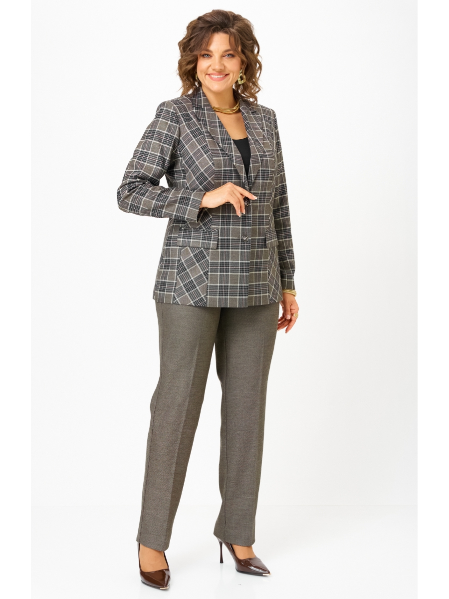 Брючный костюм БелЭльСтиль арт: 412+609 клетка+коричневый купить от белорусских производителей за 9605 руб. — с доставкой по Москве и России : belpodium.ru