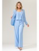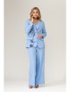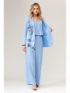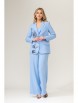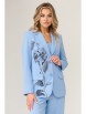 Брюки расширенные книзу с притачным поясом. По передней и задней частям брюк вытачки. По правому переду жакета выполнена декоративная печать.