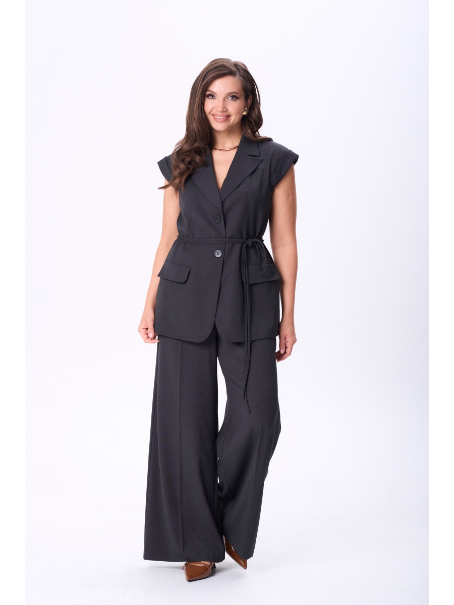 Костюм состоит из жилета и брюк, выполненных из костюмной ткани.