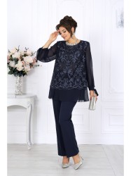 Этот нарядный костюм для полных женщин станет вашим универсальным решением — он уместен и на праздничном вечере, и в офисной обстановке. Модель гармонично сочетает в себе торжественность и лаконичность, поэтому одинаково эффектно смотрится как с лодочками и клатчем, так и с более сдержанными аксессуарами.