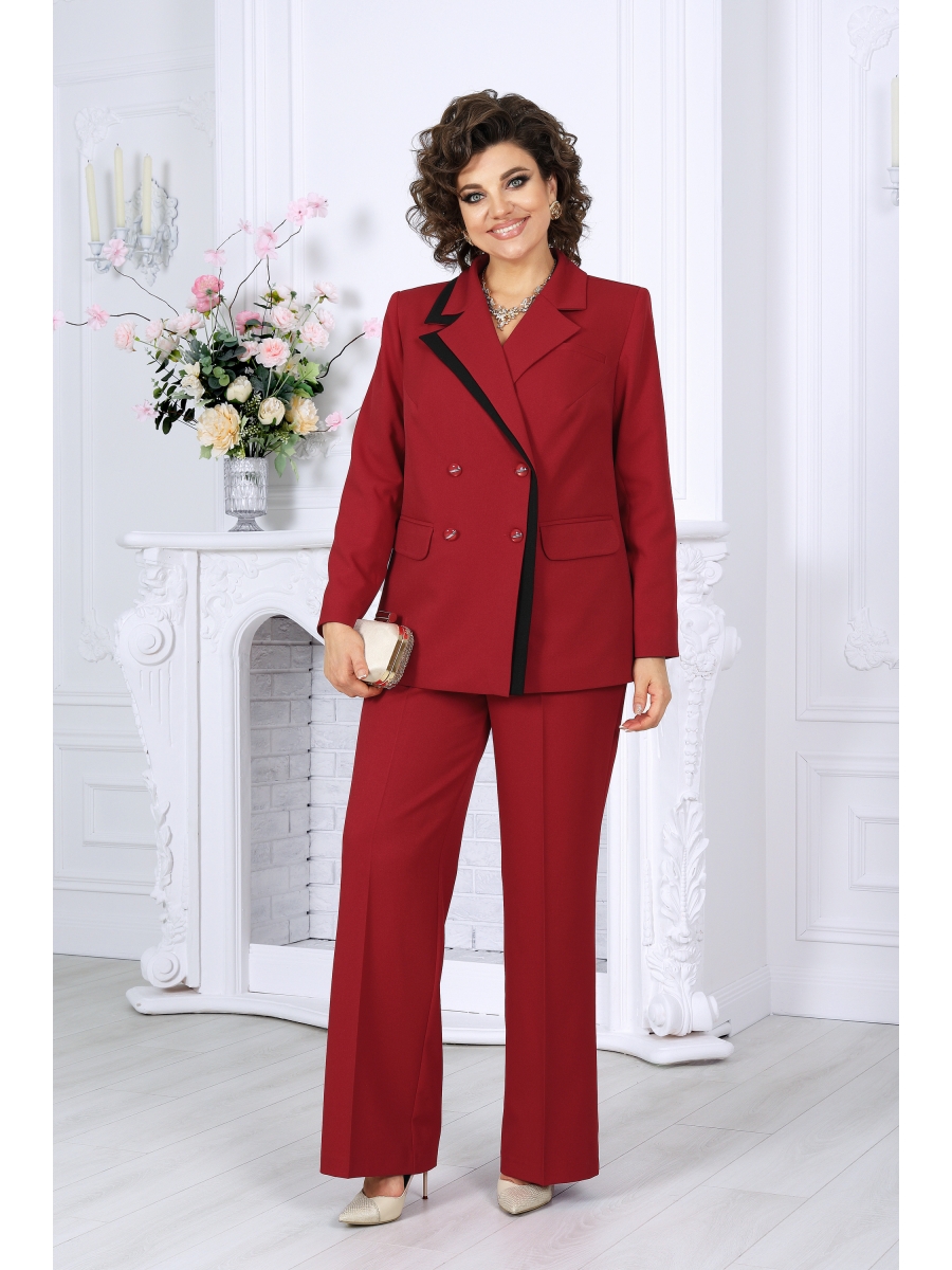 Элегантный брючный костюм двойка — идеальный выбор для деловых встреч, офисных будней, торжеств и вечерних выходов. Костюм подходит для женщин с формами: он формирует правильный силуэт, подчеркивая достоинства и создавая стройный образ. Двубортная застежка со смещением и декоративной вставкой создаёт эффект многослойности, придавая образу стильный акцент. Универсальная модель — одинаково уместна как на работе, так и на торжественном мероприятии.