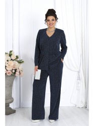 Элегантный брючный комплект – идеальный выбор для праздника, вечера в ресторане или важного мероприятия. Жакет с выразительным V-образным вырезом и аккуратными складками по линии талии подчёркивает женственный силуэт, а сияющая ткань с люрексом придаёт образу динамику и мягкость, создавая гармоничное сочетание классики и современности.