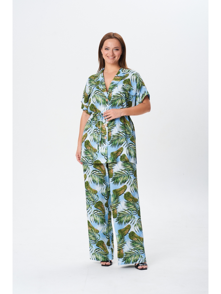 Комплект женский летний свободного покроя, состоит из блузона и брюк.