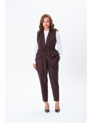 Комплект женский тройка состоит из жилета и брюк, выполнены из плательно-костюмной ткани, и лонгслива из трикотажного полотна «лапша».