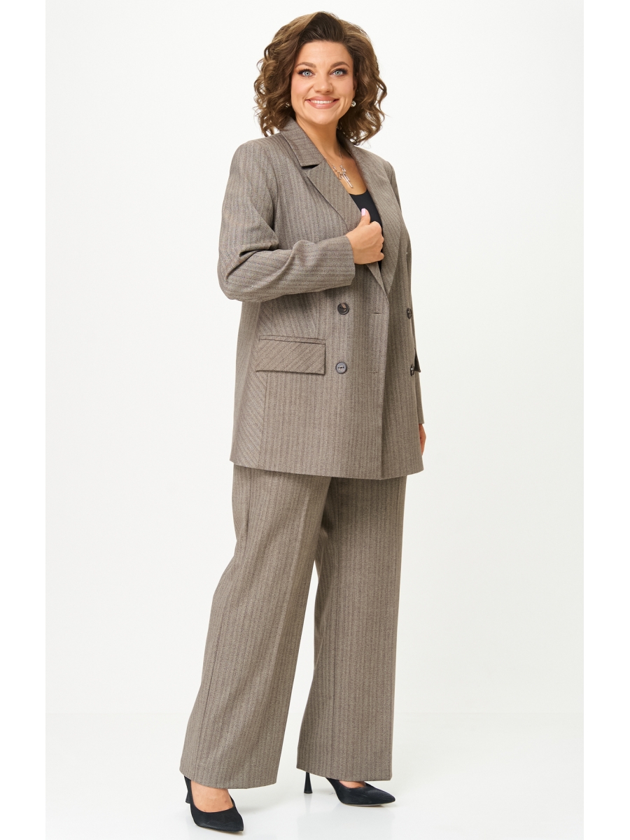 Брючный костюм артикул: 848+601 елочка коричневая от БелЭльСтиль - вид 1