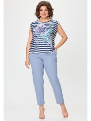 Блуза женская, из легкой текстильной ткани. По переду нагрудные вытачки, спинка цельная, в боковых швах по низу разрезы. Спущенное плечо.