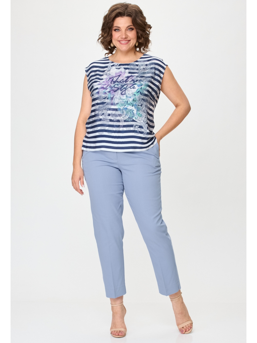 Блуза женская, из легкой текстильной ткани. По переду нагрудные вытачки, спинка цельная, в боковых швах по низу разрезы. Спущенное плечо.