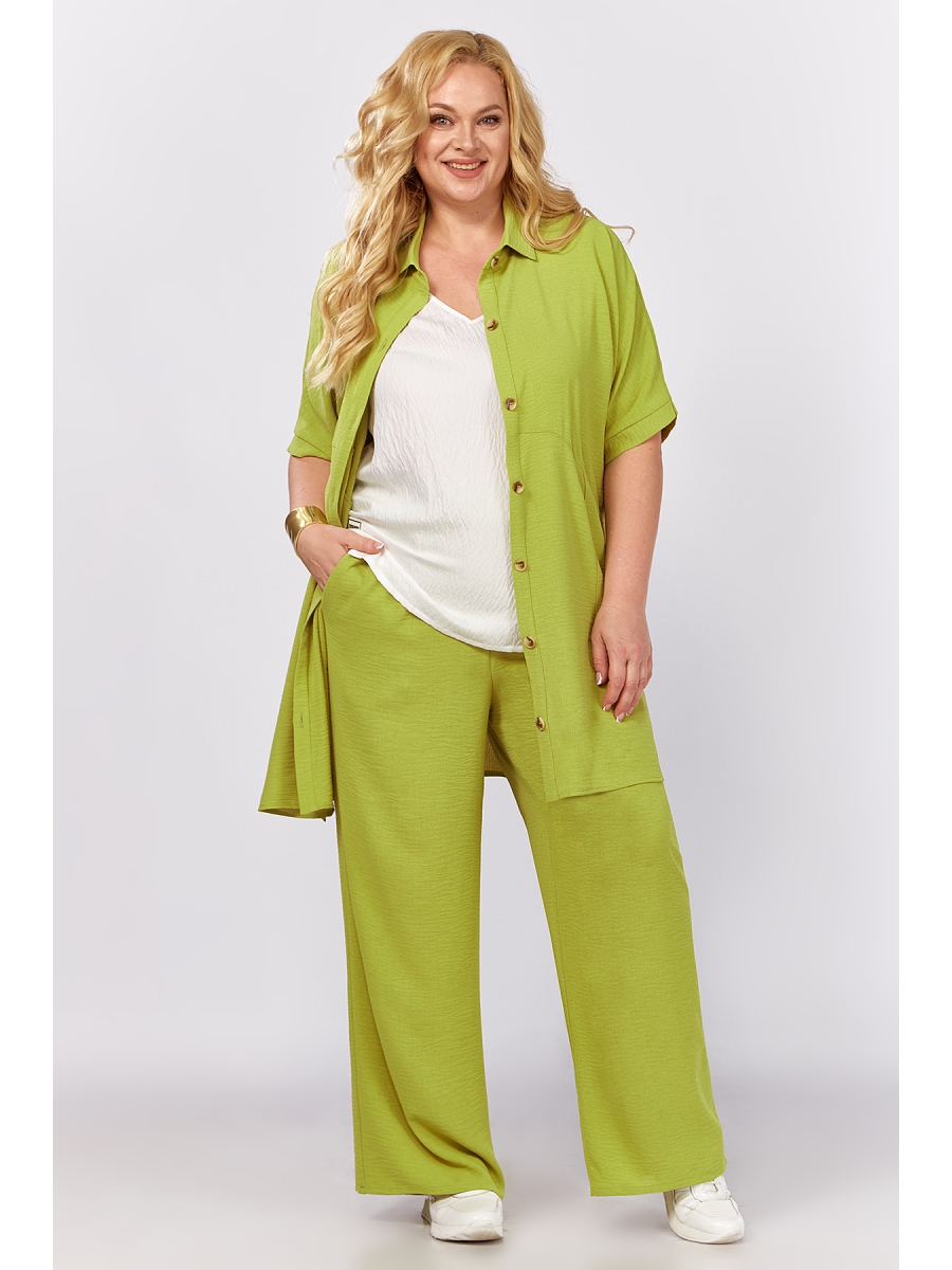 Откройте для себя стильный женский брючный комплект из рубашки, блузы и брюк, идеально подходящий для различных случаев. Костюмчик брендовый создан для женщин, ценящих комфорт и стиль. Брюки палаццо широкого кроя гармонично сочетаются с классической длинной рубашкой. Брюки частично на резинке с обработанным псевдогульфиком, с карманами в боковых швах. Блуза с разноуровневым низом, с разрезами, со спущенным плечом и декоративной нашивкой. Рубашка с коротким рукавом, и с застежкой-планкой на петли и пуговицы. Спинка со средним швом. По боковым швам обработаны разрезы. На полочке настрочены накладные карманы. Красивый летний наряд прекрасно комбинируется, позволяя создать как повседневный, так и нарядный образ. На вечеринке или фотосессии — Вы будете в центре внимания! Благодаря однотонному дизайну, комплект выглядит аккуратно и стильно, за счет чего придает уверенность каждой девушке независимо от случая - будь то корпоративное мероприятие или торжество. Легкий молодежный комплект-тройка представлен также в больших размерах, чтобы подчеркнуть индивидуальность дамам в размере плюс сайз и девушкам - любительницам оверсайз стиля и трендовых необычных образов.