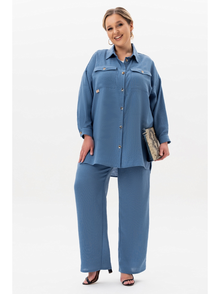 Ищешь стильный и универсальный костюм на любой случай? Женский брючный костюм из лёгкой ткани – превосходное решение для летнего гардероба! В костюм входят брюки на резинке с карманами-хулиганами и рубашка с длинным рукавом и застежкой на петли и пуговицы. На рубашке обработаны нагрудные накладные карманы с клапаном. Рукав на манжете. Оба изделия можно носить как самостоятельные и вписывать их в абсолютно любой образ, будь то деловой, офисный, повседневный городской, спортивный, пляжный или вечерний. Костюм сшит из невесомого материала, в состав которого входят хлопок и лен. Свободный, прямой крой хорошо садится на любой рост и тип фигуры, худых и полных, высоких и невысоких женщин и девушек. Модель оверсайз позволит чувствовать себя комфортно и удобно. Эта необычная однотонная двойка без принта не выйдет из моды и будет актуальна во все времена, подойдёт на все случаи жизни. В наличии ультрамодные и классические расцветки. Жакет и брюки состоят из натуральной и легкой ткани, которая позволит Вашей коже дышать в жаркие дни. Большие размеры и свободный крой обеспечат максимальный комфорт и свободу движений.