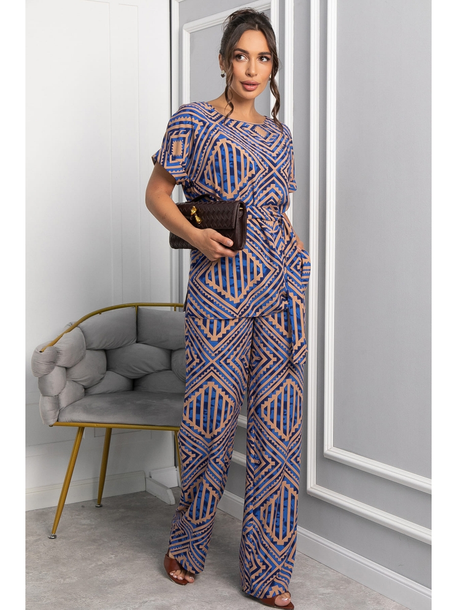 Костюм из лёгкой ткани не сковывает движения, очень удобный и дарит ощущение лёгкости в жаркую погоду. Идеально подходит для создания офисных образов и повседневных летних прогулок. В комплекте пояс из основной ткани. Костюм без подкладки. Брюки на резинке, есть карманы в боковых швах.