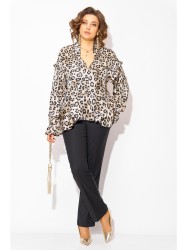 Леопардовая нарядная блузка в стиле «Оверсайз» – это модный предмет гардероба, который ассоциируется с уверенностью и энергией. Модель свободного силуэта трапеция, с ассиметричной линией низа. Линия горловины V-образная, переходит в мягкую стойку-бант. Рукав длинный на резинке, на спущенном плечевом поясе. Низ изделия и низ рукава оформлен мягким воланом. Спинка с небольшим V-образным вырезом.