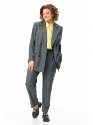 Жакет классический двубортный, на подкладке. Воротник пиджачный. Карманы с клапанами. Рукав втачной классический двушовный со шлицей в локтевом шве. Спина со средним швом.