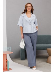 Брюки прямого кроя с высокой посадкой, с наклонными карманами в боковых швах, по срезу банта – застежка-молния. По передним половинкам талиевые вытачки. По низу брюк отложные манжеты. Верхний срез оформлен поясом с эластичной резинкой по задней половинке.