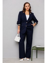 Жакет полуприлегающего силуэта, выполнен из костюмной ткани (не тянется) с отделкой из довяза на подкладке. Перед с нагрудными вытачками и настрочными клапанами. Застежка центральная на петли-пуговицы. Горловина оформлена воротником пиджачного типа с лацканом. Спинка со средним швом. Рукава втачные, двухшовные с мягкими складками и манжетой из довяза.