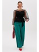 Брюки свободного прямого кроя с высокой посадкой, выполнены из крепа на трикотажной основе с люрексом (ткань тянется). В боковых швах функциональные карманы. Верхний срез оформлен поясом с эластичной резинкой.